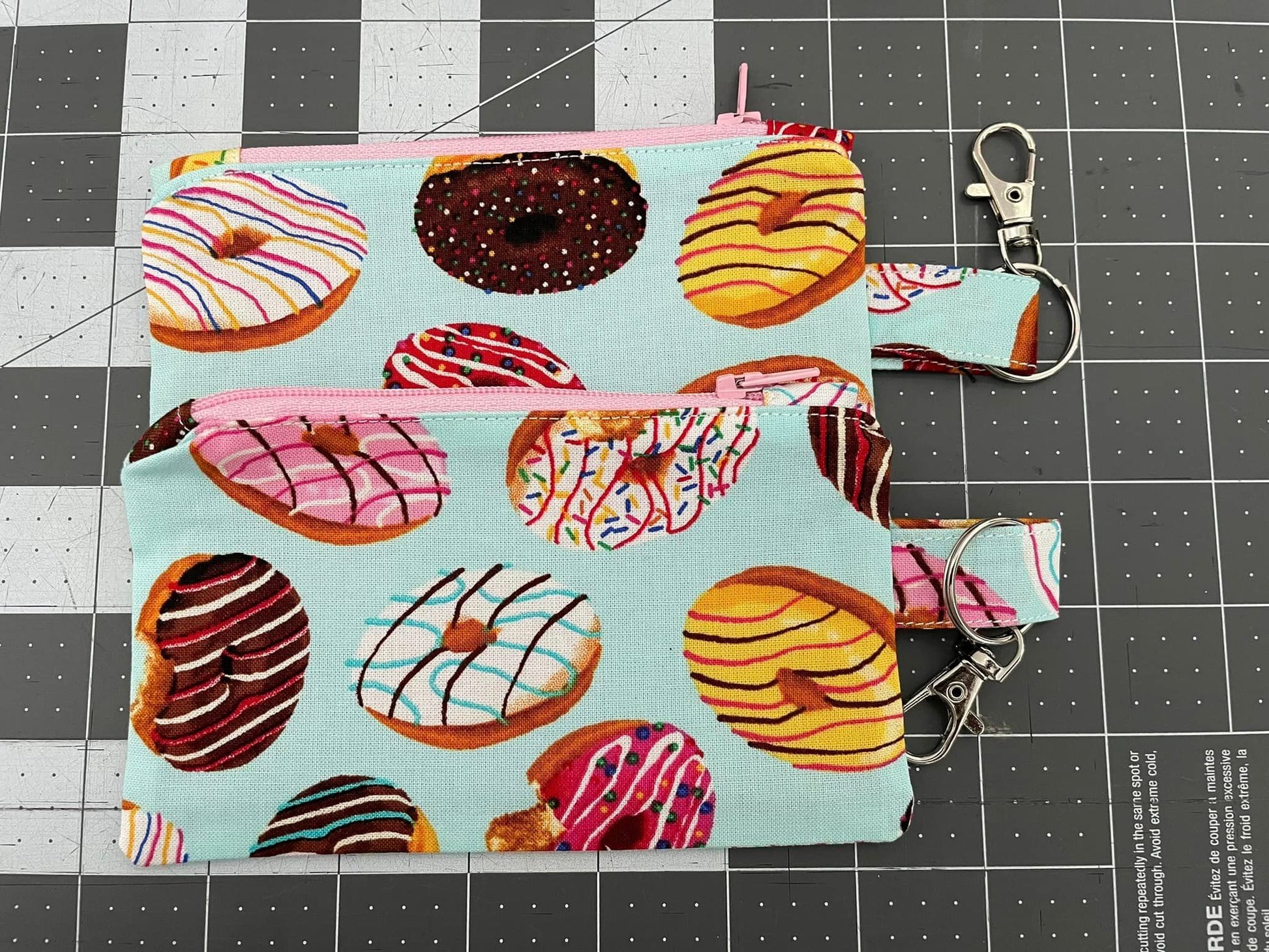 This delightful handmade donut-themed coin purse is sure to satisfy your sweet tooth without any of the calories! Adorned with a colorful assortment of frosted donuts on a light blue background, this purse is as fun and cheerful as a box of freshly baked treats. The soft pink zipper and handy keychain clasp make it perfect for keeping your coins, cash, or small items secure while you're on the go. It's the perfect accessory for anyone who loves a little sweetness in their day! Price includes shipping!!!
